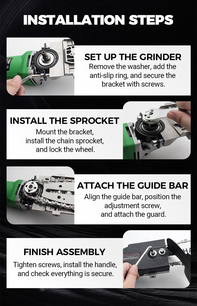 🔥12-inch Stand (2 Chains) Angle Grinder Converted Electric Chainsaw Kit(Angle grinder not included)