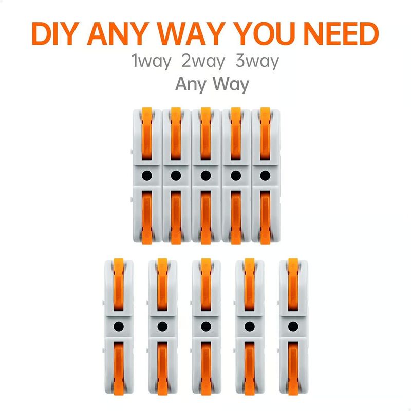 ✅ High efficiency: The lever wire connector has a more efficient working efficiency. Whether at home or in the workplace, the wires can be inspected and reassembled at any time, and they can also be recycled.