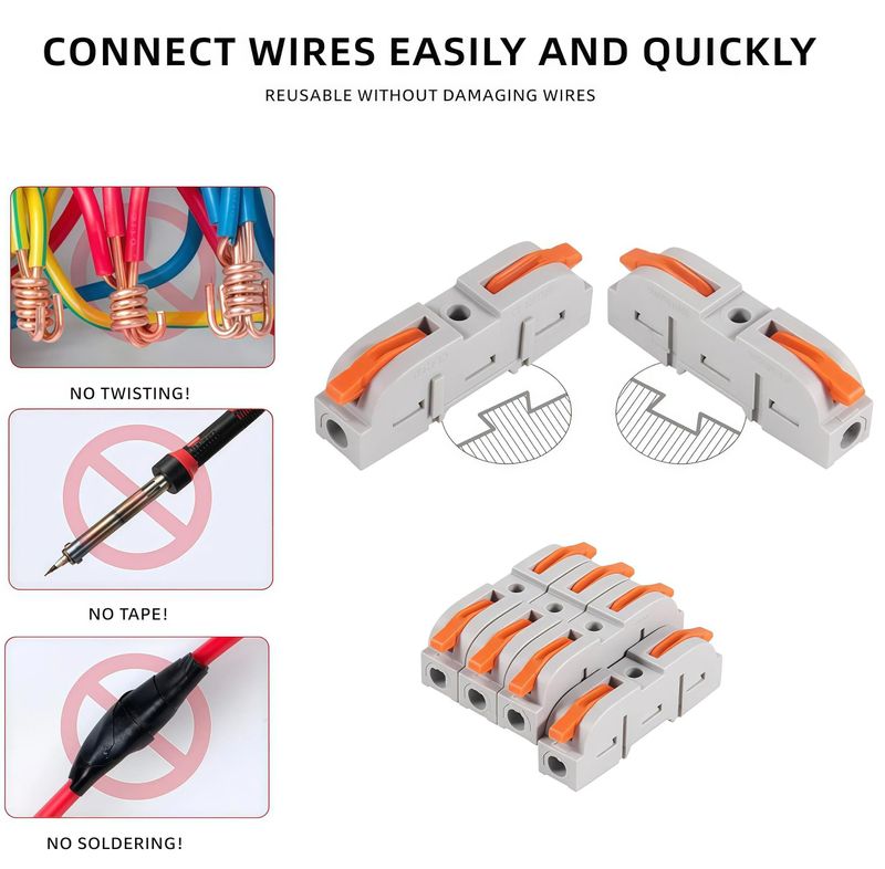 ✅ Easy to Use: This wire connector can quickly and easily assemble wires without twisting or wrapping tape. With their lever design, these lever connectors make it effortless to connect and disconnect wires.