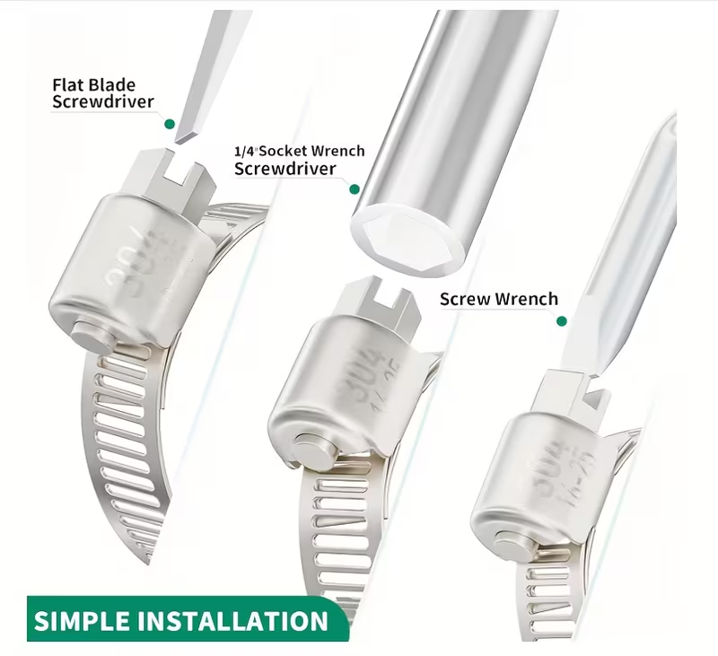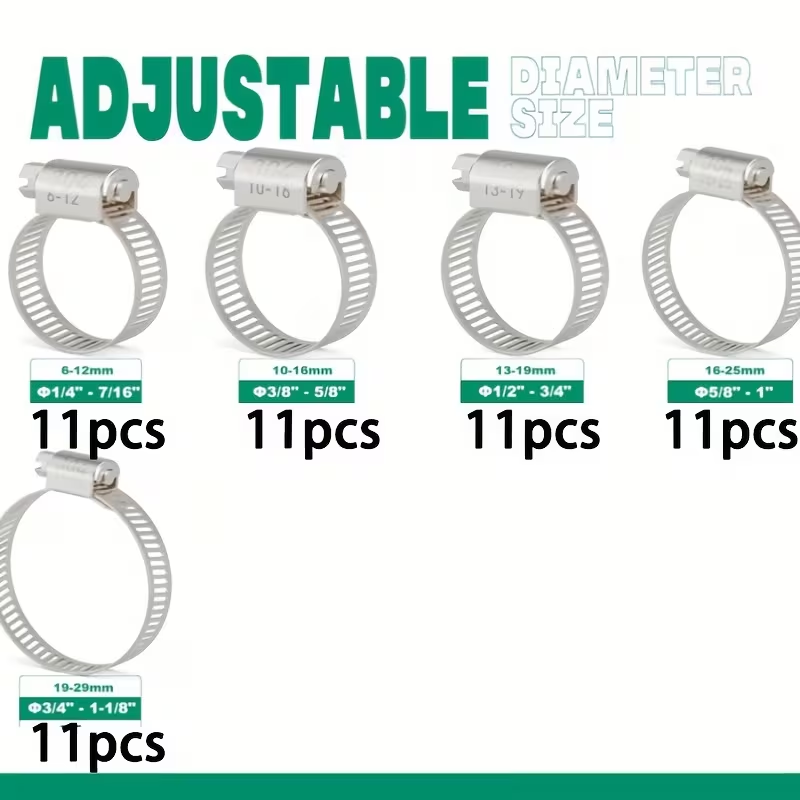 Adjustable Stainless Steel Worm Gear Hose Clamp 1-4-1-1-8 (6-29mm) for Automotive, Plumbing, Radiator, Fuel Lines