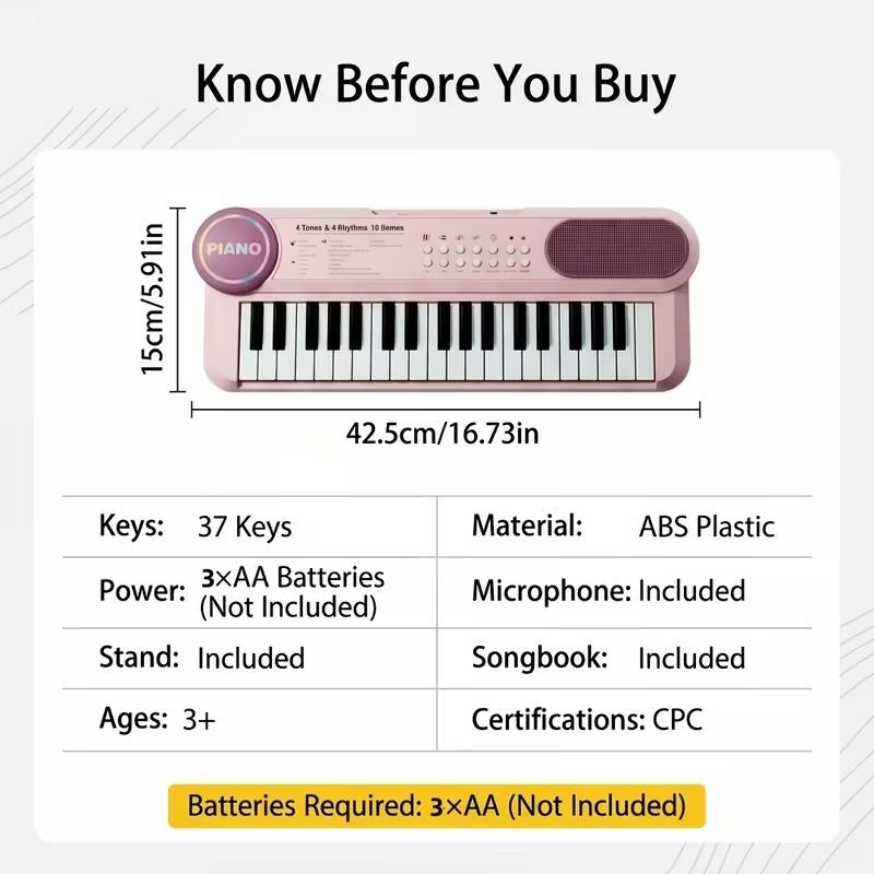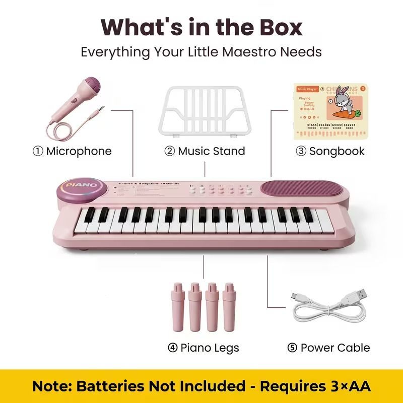 Electronic Organ 37-key Multi-functional Children's Toy Educational Instrument Set Microphone Piano, Birthday Gift for Boys And Girls