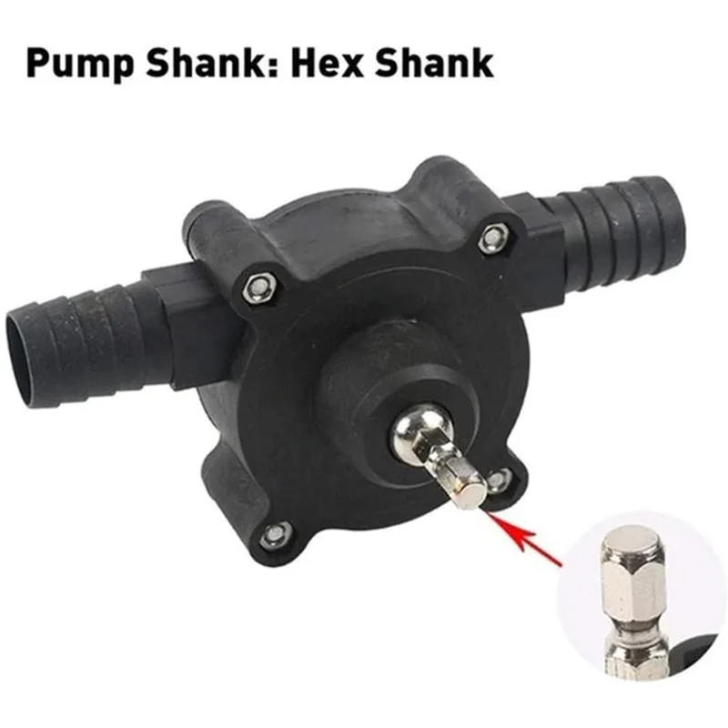 Self-Priming Transfer Pump is battery-free. All you need is to attach an electric drill to this pump, and you can transfer water, oil, and more! The drill pump’s hex shank is compatible with different kinds of drill bit chunks.