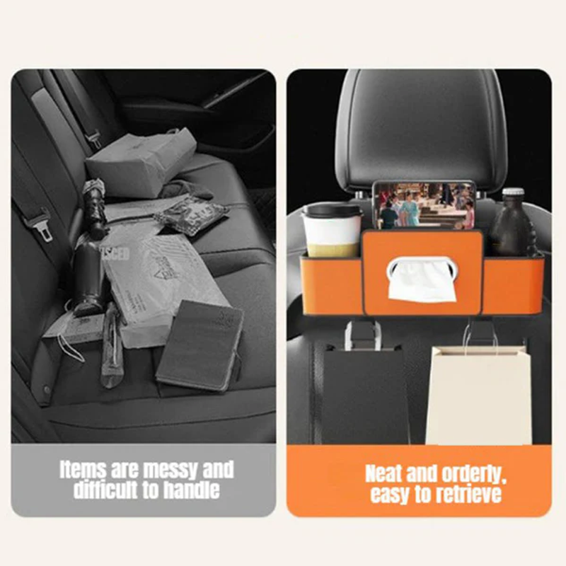 NAPKIN DRAWER DESIGN - The innovative napkin drawer design of the Car Multi-Function Backrest Storage Box sets it apart from standard storage solutions. This dedicated compartment allows for easy access to napkins and small essentials, ensuring that you’re always prepared for spills or snacks on the go.